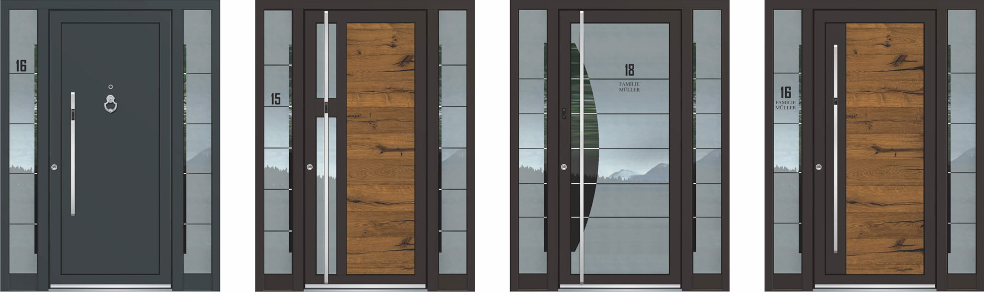Das neue Programm EXCLUSIV 3D mit verstärkter Füllung bis 105 mm ermöglicht vollkommen neue Dimensionen der Türgestaltung. Die geschmackvolle Kombination der neuen rechteckigen Form des Außentürprofils, die neuen Hochglanz–Holzdekors, die eleganten Glasmotive oder das extravagante schwarze Außenglas verleihen den Haustüren Eleganz und unbegrenzte Möglichkeiten zur Gestaltung von Haustüren im 3D-Design.