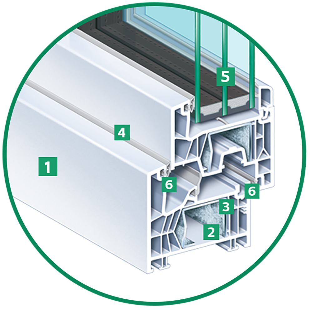 EGE setzt ausschließlich auf erstklassige Vorprodukte, darunter die bleifreien Kunststoffprofile des Marktführers Kömmerling. Das Ergebnis: hervorragende Wärmedämmung für optimale U-Werte, robuste Stahlverstärkungen für Stabilität, zuverlässige Einbruchhemmung und wetterbeständige Materialien, die jeder Witterung standhalten.